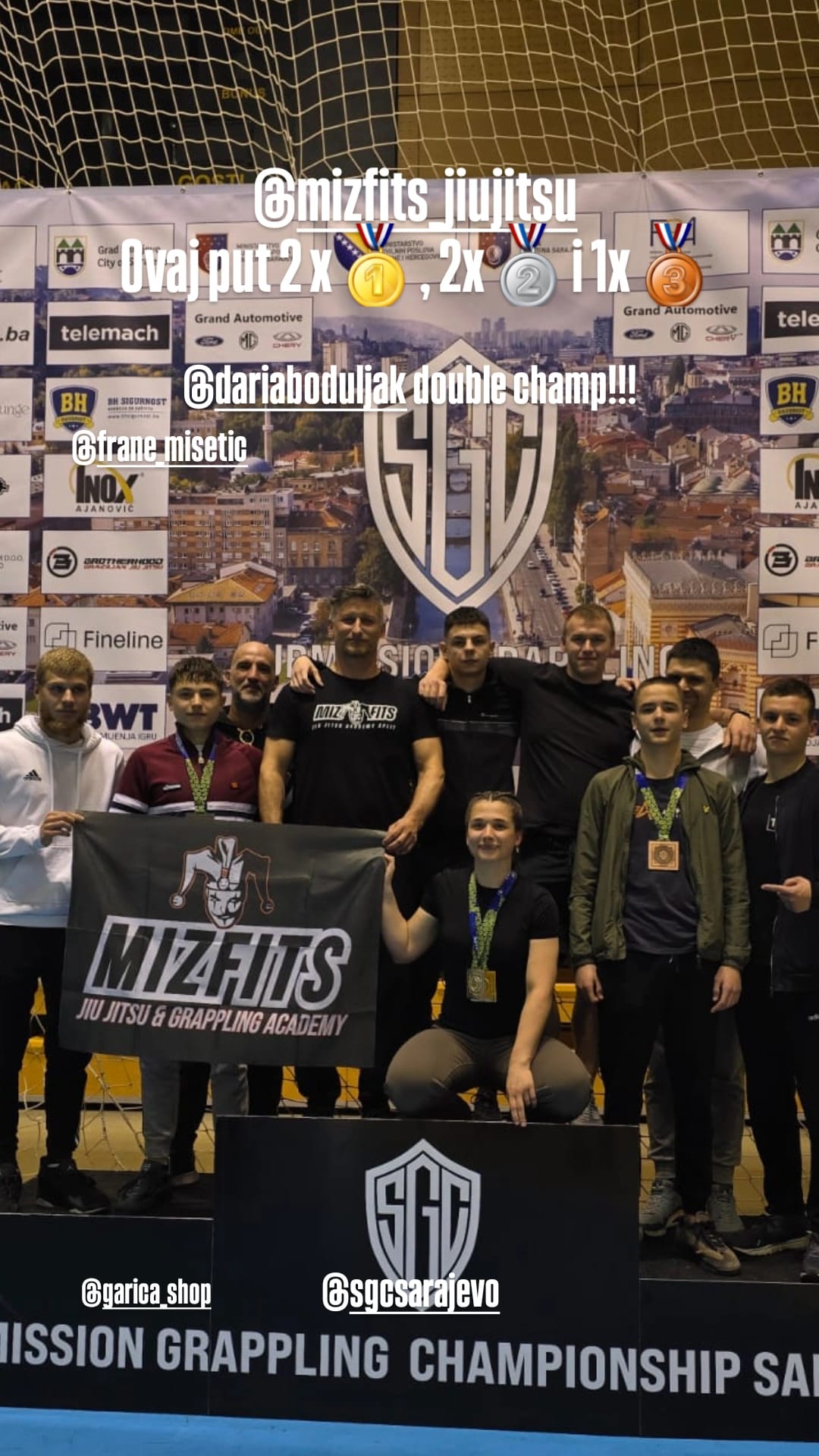 Vratili smo se iz Sarajeva s još jednog sjajnog međunarodnog nastupa i novom potvrdom da Mizfits iz turnira u turnir raste kao ozbiljna natjecateljska ekipa. Na Submission Grappling Championshipu 9, turniru koji je okupio čak 397 boraca iz 31 kluba, naši su natjecatelji osvojili 2 zlatne medalje, 2 srebrne i jednu broncu.
